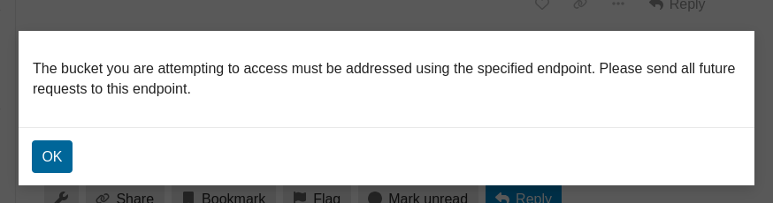 The bucket you are attempting to access must be addressed using the specified endpoint. Please send all future requests to this endpoint.