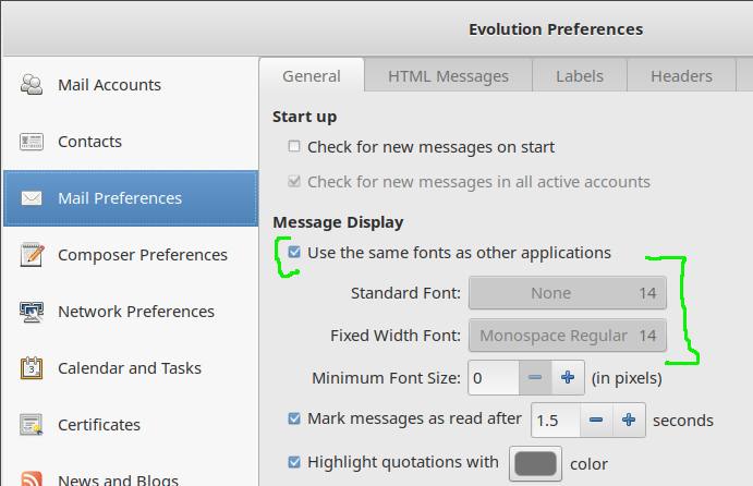 accidentally set Evolution to use a smaller font.