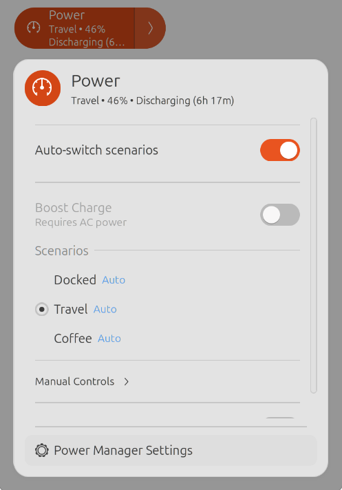 - Switch Power Saver / Balanced / Performance via power-profiles-daemon