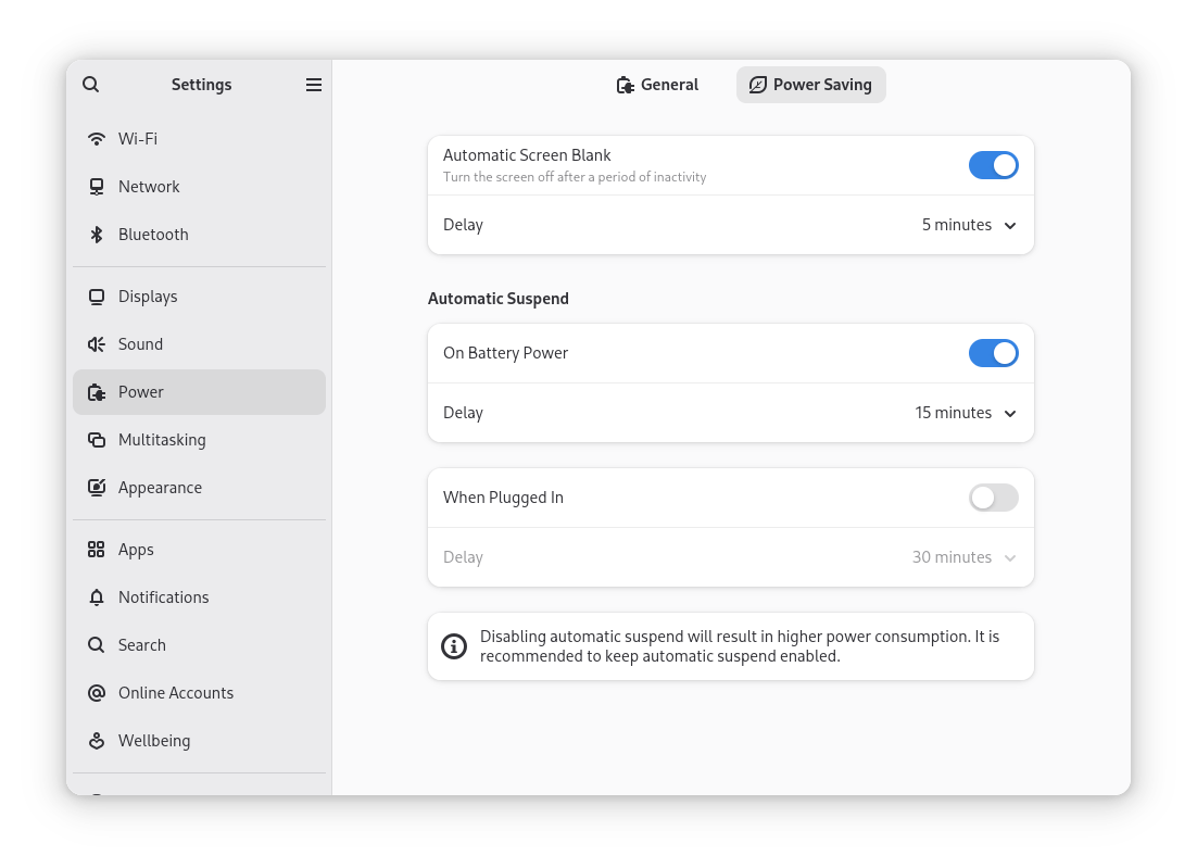 my power settings look like this on Debian trixie with Gnome 48 (full system details below):