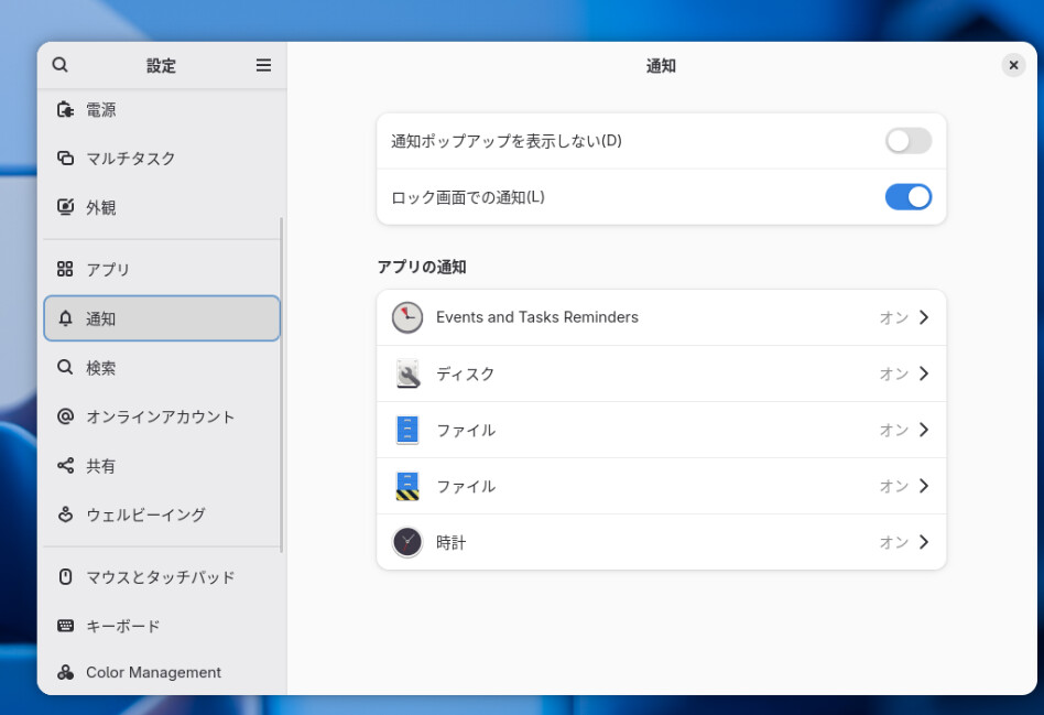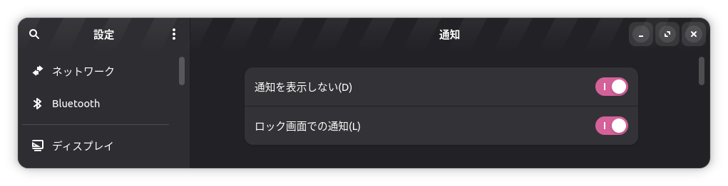また、設定にも「通知ポップアップを表示しない(_D)」という項目があり、クイック設定のボタンと連動しています。