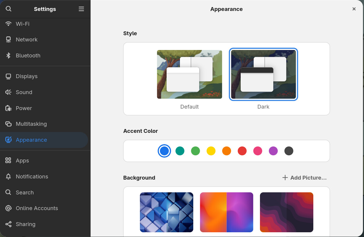 When I select dark mode, the sidebars are dark but the backgrounds are light. This persists across a number of applications. When steps can I take to remedy this? Thanks!